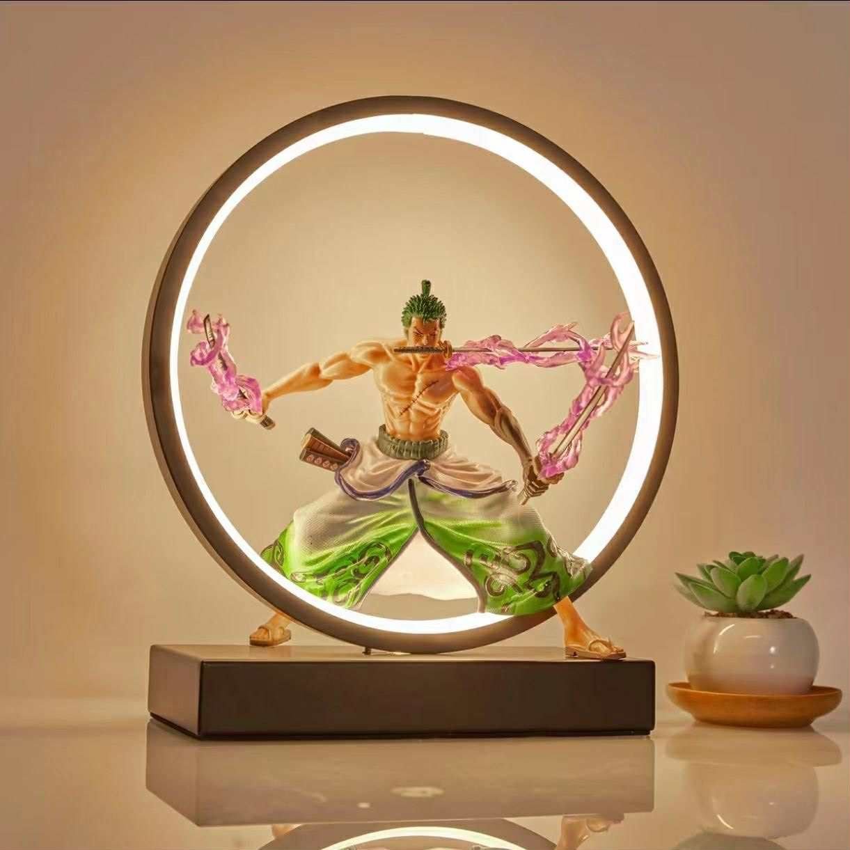 The figure features built-in LED lighting that illuminates the energy sphere, creating a dynamic display.